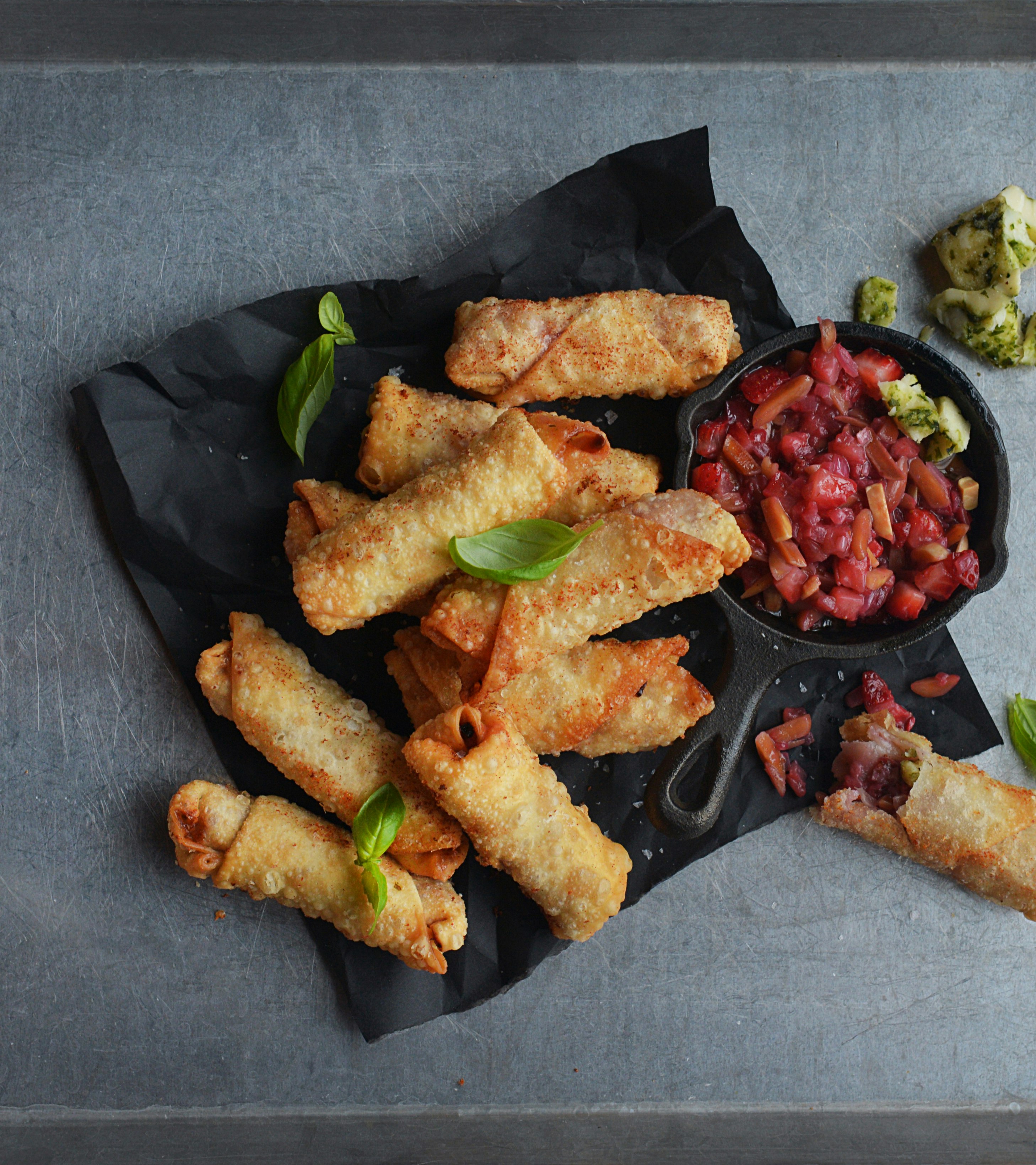 Pour faire un beau rouleau, disposer la feuille à rouleau en losange devant vous.↲ Déposer le mélange en plein centre. ↲ Remonter la pointe du bas sur le mélange et serrer vers vous. ↲ Rabattre les 2 pointes de côtés et rouler le rouleau bien serré. ↲ Mettre 1/2 cuillère à thé de colle alimentaire sur la pointe du dessus pour bien le fermer.
