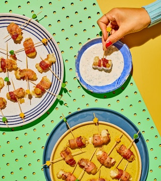 Bouchées de patates au bacon, au fromage en grains et sauce ranch