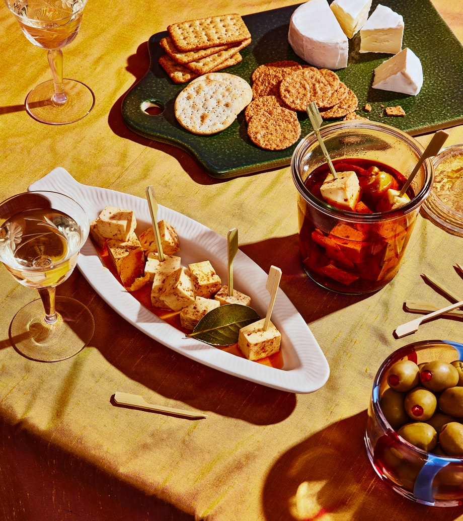 En plus de servir ces cubes de feta comme hors-d’œuvre, on peut en garnir les salades, les soupes et le maïs grillé à la mexicaine. (Idéal pour les personnes qui apprécient moins la saveur prononcée et salée des cubes quand ils sont servis seuls.)