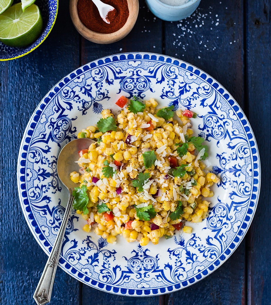 Salade tiède de maïs, poivrons et fromage