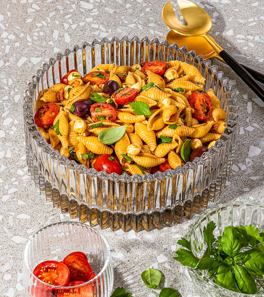 Salade de pâtes aux tomates séchées, olives et bocconcini