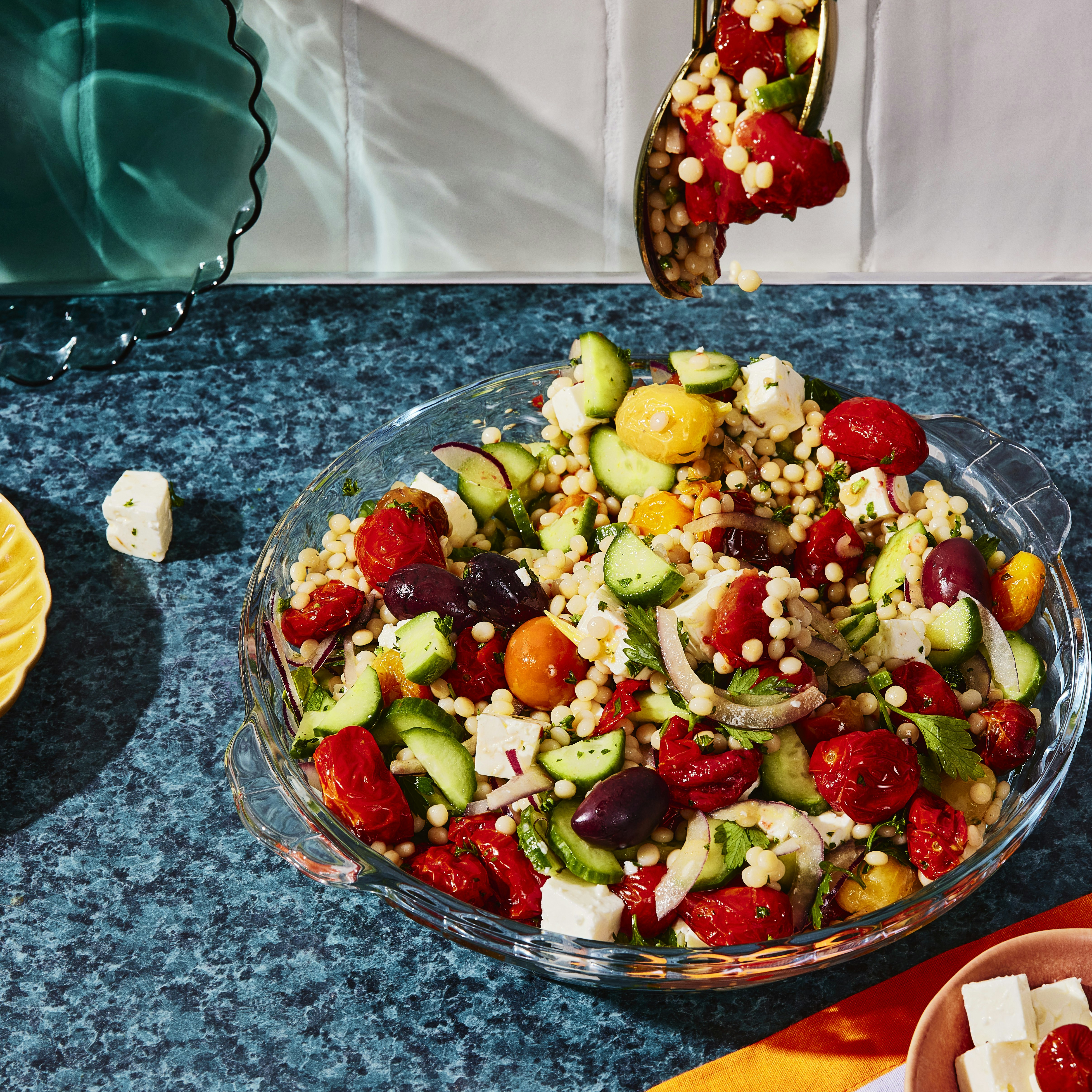 Salade de couscous perlé aux tomates rôties et au feta