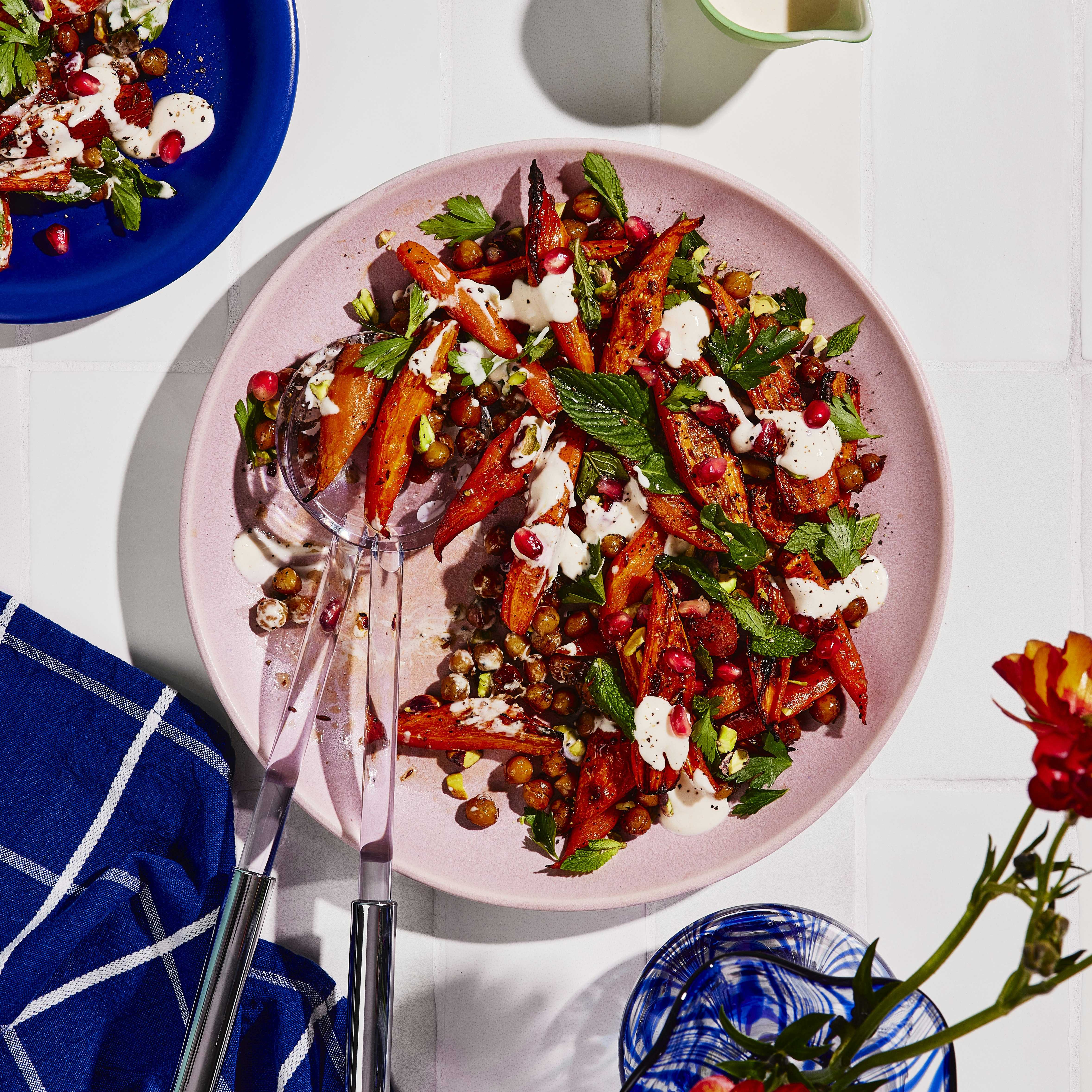 Salade de carottes et de pois chiches rôtis, avec vinaigrette au tahini