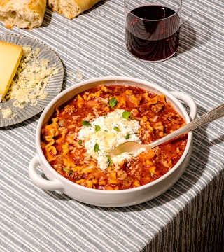 Option mijoteuse : À la fin de l’étape 2, on peut transférer le mélange cuit de viande hachée dans une mijoteuse. Ajouter les tomates broyées, le bouillon, et les épices italiennes. Saler et poivrer. Couvrir et cuire à température élevée pendant 4 heures. Trente minutes avant la fin de cuisson, ajouter les pâtes sèches et poursuivre la cuisson à température basse jusqu’à ce que les pâtes soient al dente. Cette soupe se congèle bien.