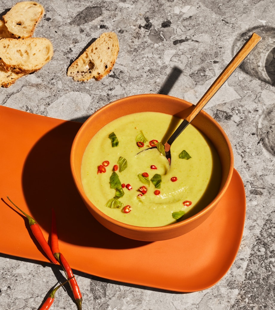 Pour servir le potage froid, si désiré : verser dans un contenant pourvu d’un couvercle, laisser tiédir, puis réfrigérer pendant au moins 1 heure. Au moment de servir, si le potage est trop épais, on peut y ajouter un peu de crème.