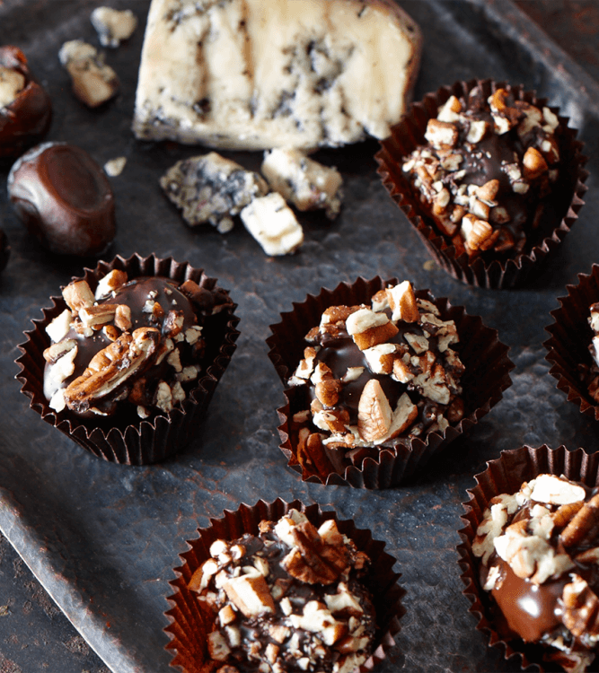 Les dattes farcies au fromage [ Le Bleu d'Élizabeth](https://www.fromagesdici.com/fr/fromages/172/le-bleu-delizabeth#_ga=2.106072197.726776706.1522868257-1056124343.1520629561&_gac=1.187093594.1520949233.Cj0KCQjw7Z3VBRC-ARIsAEQifZQvNh9fttFM8_2TyjORq4Gl1xbqycUw2NHBWYbsSDr5j9Dvogpmcf4aAk-EEALw_wcB) et au chocolat noir se conservent 4 à 5 jours au réfrigérateur.