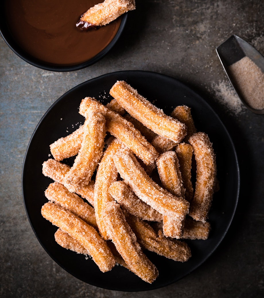Servir les churros accompagnés d’une sauce caramel au beurre salé en remplacement de la sauce au chocolat.