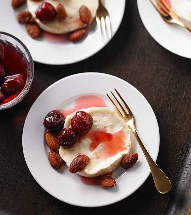 La confiture de cerises se conserve au réfrigérateur jusqu’à deux semaines. Les amandes peuvent être faites à l’avance et conservées hermétiquement à température ambiante. L’assemblage doit être fait au moment de servir.