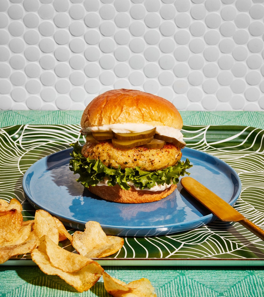 Burger de crevettes à l’halloumi et mayonnaise épicée