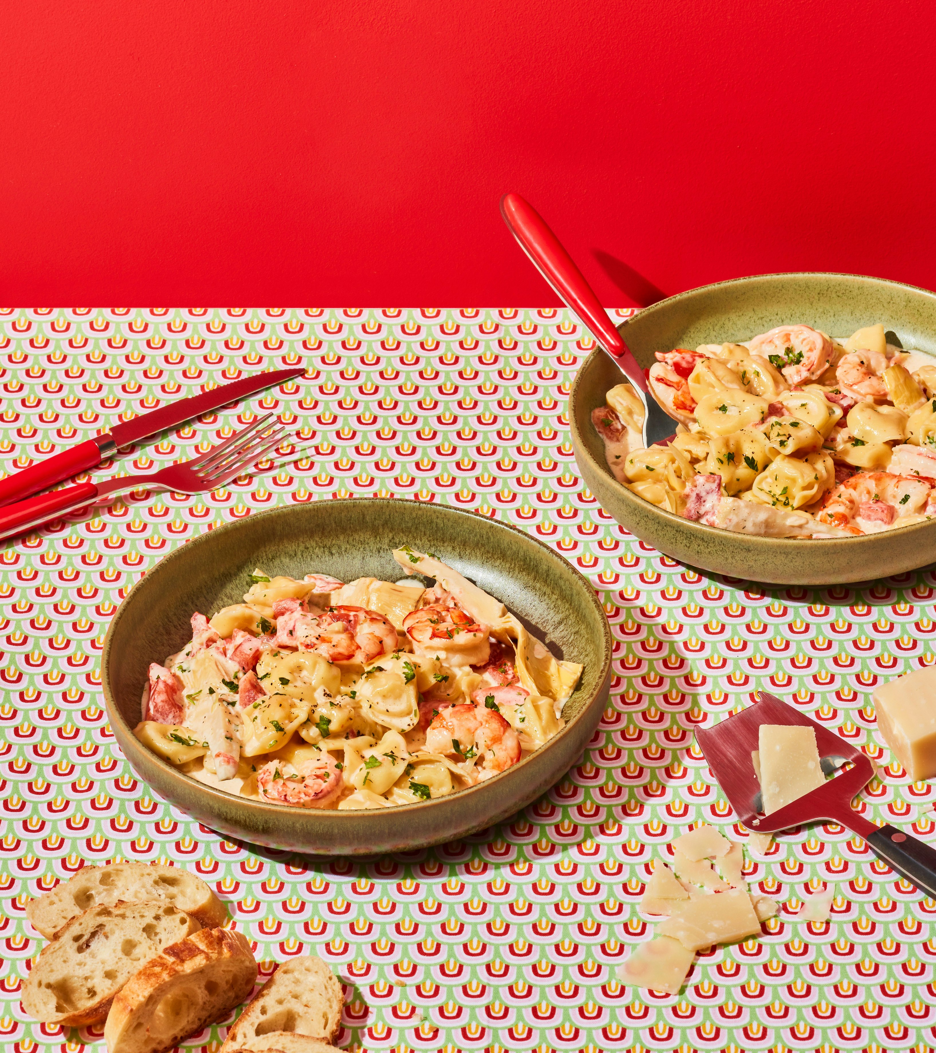 Tortellinis, sauce crémeuse aux artichauts et aux crevettes
