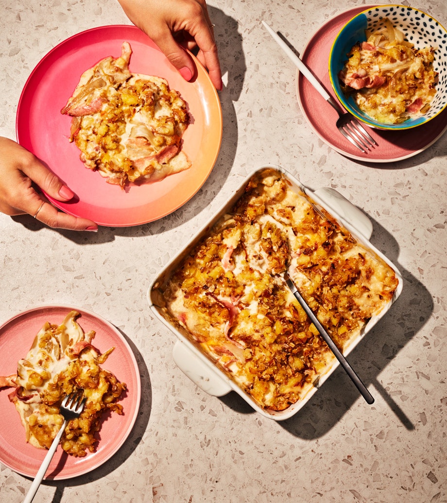 Croustade aux pommes de terre rattes, au fromage, au jambon blanc et aux endives