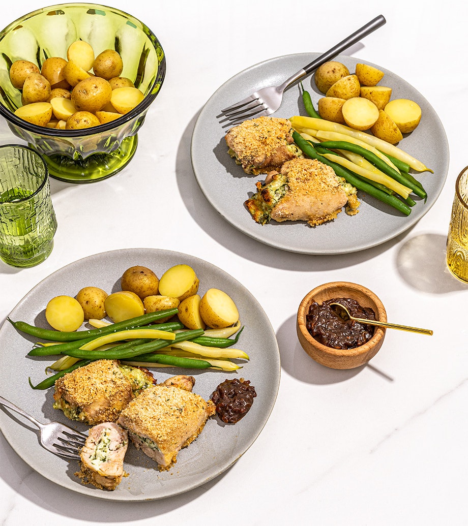 Hauts de cuisse de poulet farcis au fromage et échalotes