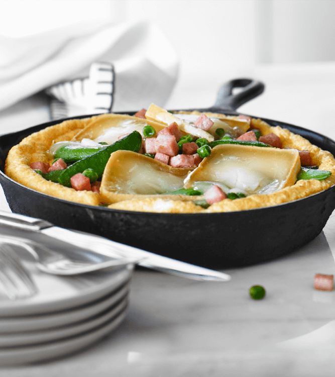 Le Freddo en omelette soufflée au jambon et aux petits pois