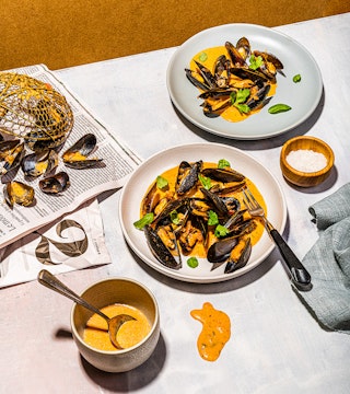 Moules aux tomates et vin blanc