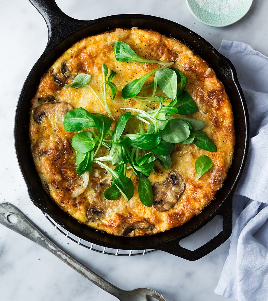 Servir la frittata accompagnée de salade de mâche ou de cresson, ou d’une salade verte!