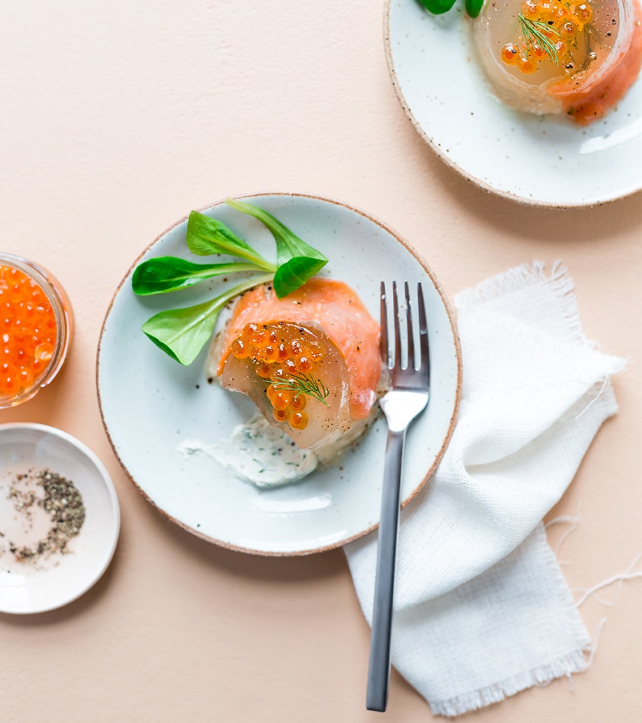 ● Variante : Ajouter 125 ml (½ tasse) de petits pois surgelés et décongelés, ou des dés de betterave aux aspics.
