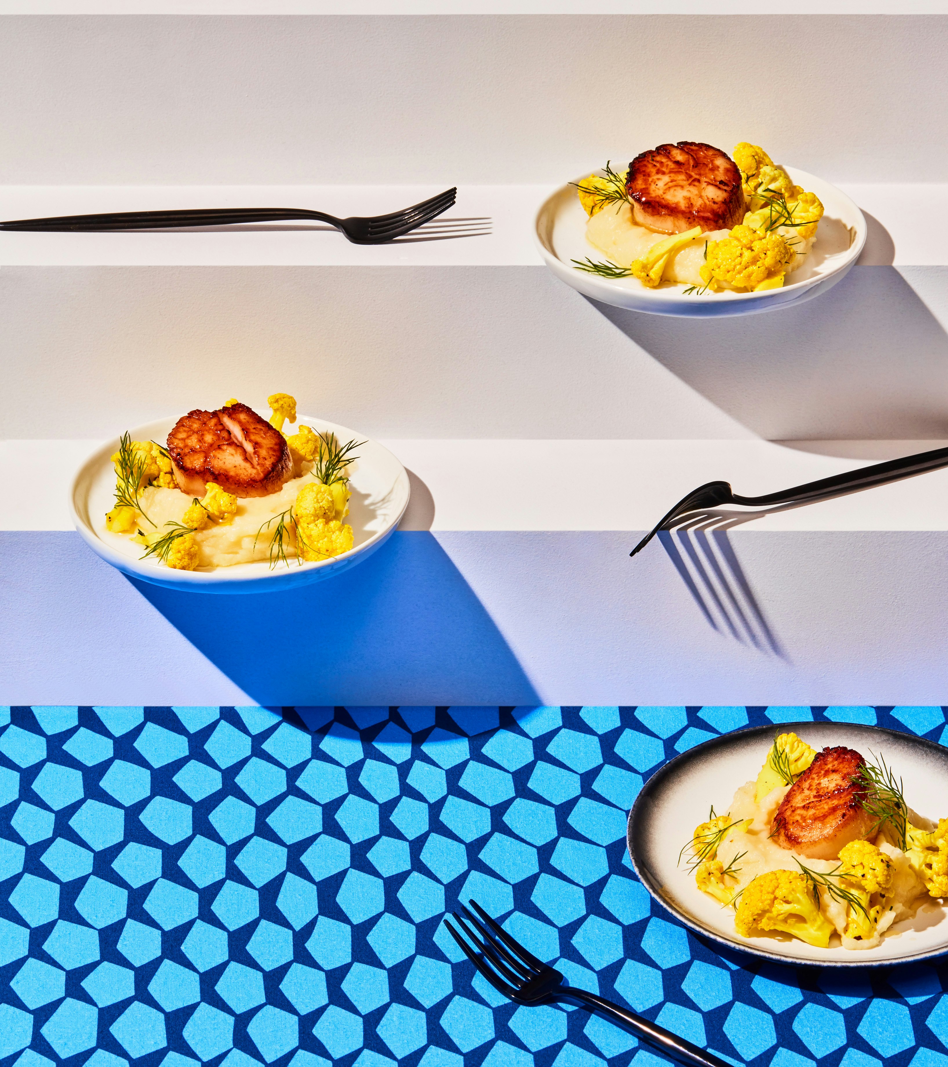 Pétoncles poêlés et purée de pommes de terre au fromage