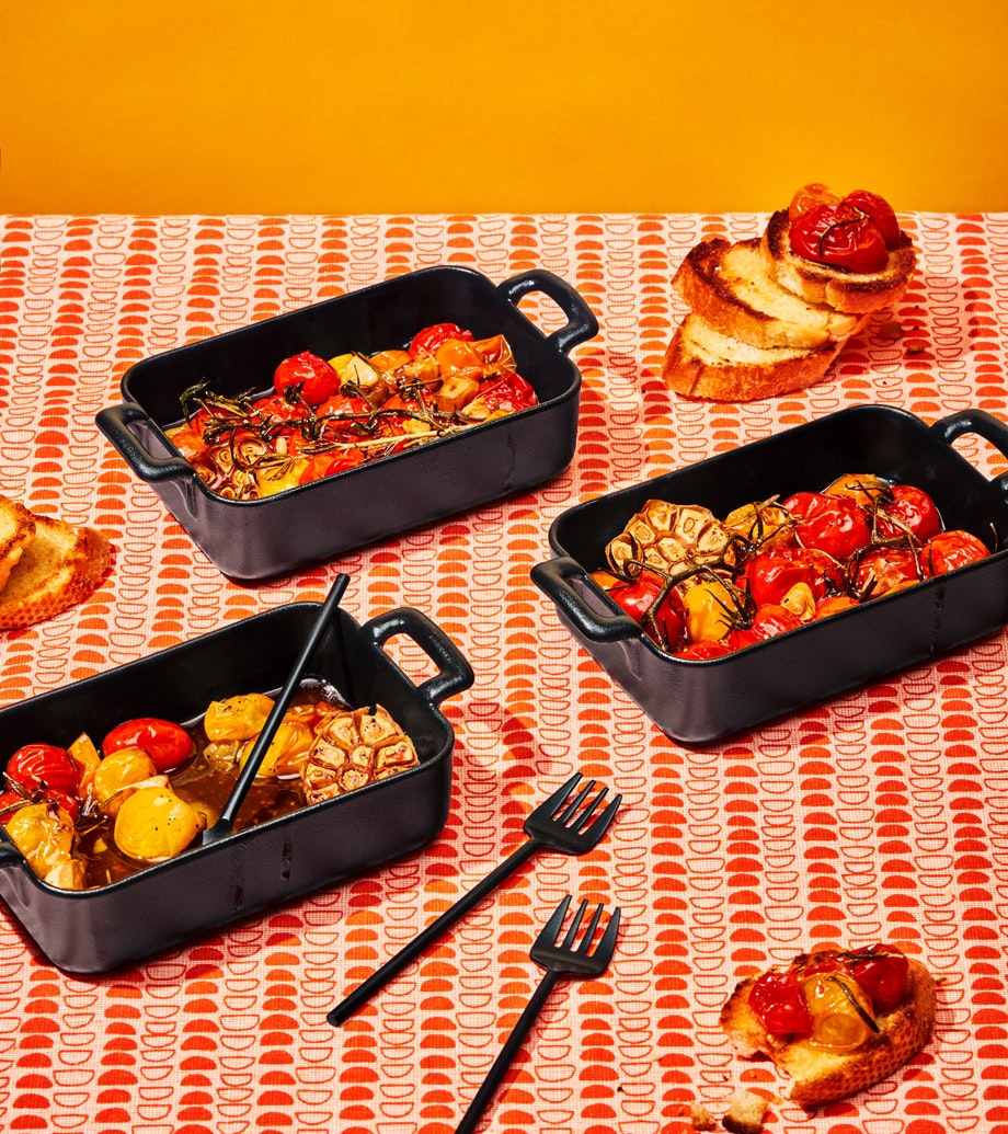 Tomates cerises et ail confits au romarin et au beurre