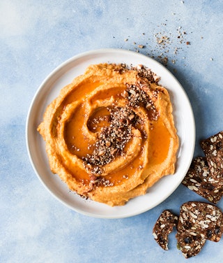 Pour vrai de vrai. C’est une tartinade légèrement sucrée, puis parfaitement croquante avec l’ajout de dukkah (mélange de noix et d’épices) sur le dessus. Mais qu’est-ce qu’on croque? Des amandes rôties (fait : quand on fait rôtir des amandes dans la poêle, le goût devient plus prononcé), des graines de pavot et de sésame, puis de la cannelle moulue. On dit tartinade, mais… pour nous, c’est le jeu « À quel point une toast peut supporter autant de tartinade sur elle? » Et on adore y jouer. Notre bedon aussi.