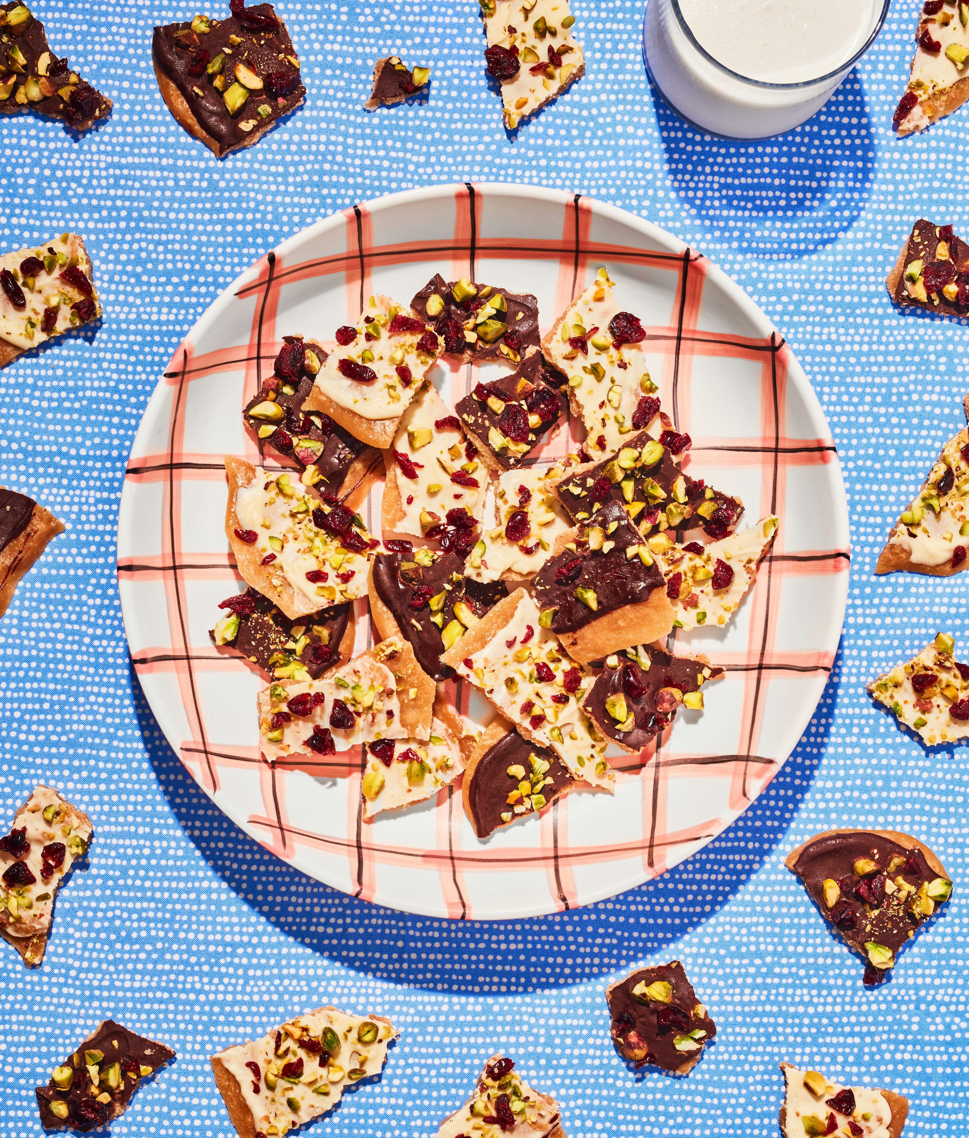 Caramel croquant aux deux chocolats, aux canneberges et aux pistaches