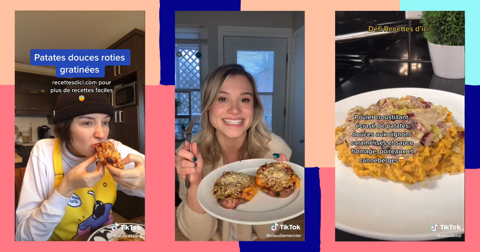 C’est quoi, le #défirecettesdici ? C’est le « challenge » TikTok qu’on a lancé à 12 influenceurs d’ici de concocter une recette originale avec les six ingrédients d’une boîte-surprise qu’on leur avait envoyée. Nos chefs-créateurs devaient filmer le tout en ajoutant du miam à la louche et un soupçon de « ah ouais, cool ! » pour notre plus grand bonheur.