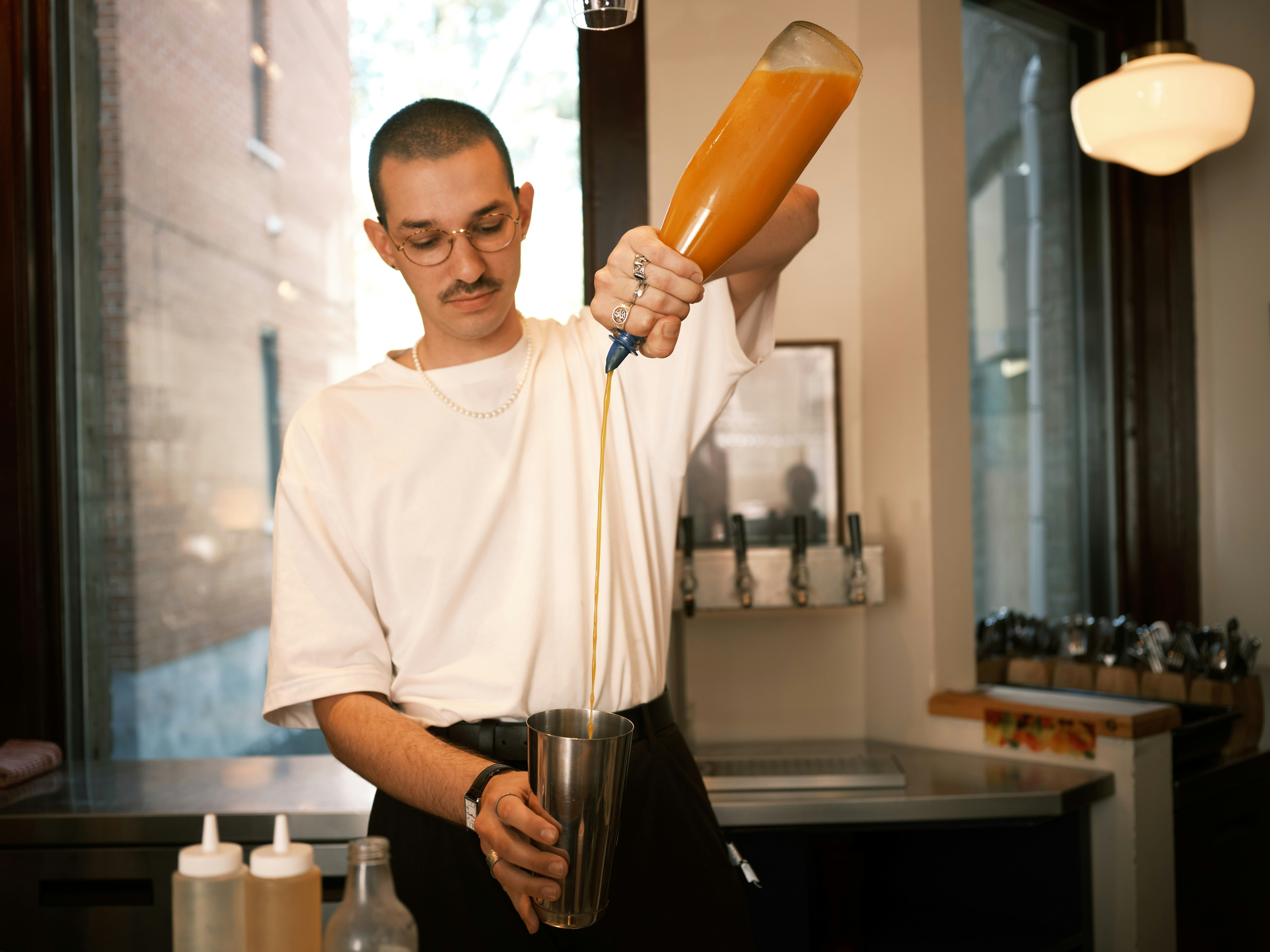 Valentin admet que ce n’est pas toujours rose. Il court parfois dans tous les sens au point de ne pas avoir le temps de dire des phrases complètes à ses collègues. « Même lorsque c’est une soirée difficile, on a un sentiment de fierté d’être passé à travers. Je trouve ça beau qu’on arrive à se mettre tous ensemble pour que ça roule et que les clients aient du plaisir », raconte le barman de 24 ans. La chimie opère même les jours de congé : sa gang du Bar à flot organise des soupers ou fait la tournée des nouveaux restos. « À force de passer du temps ensemble, on est devenus très proches. »