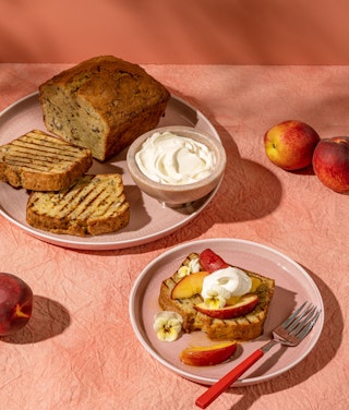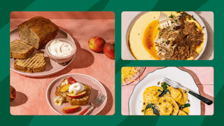 Vous ne savez pas quoi cuisiner? On y a pensé pour vous! Au menu de cette semaine, on ajoute à votre répertoire de grands classiques : un pain aux zucchinis grillé, avec pêches macérées et crème fraîche, du porc effiloché et polenta crémeuse, et bien plus encore.