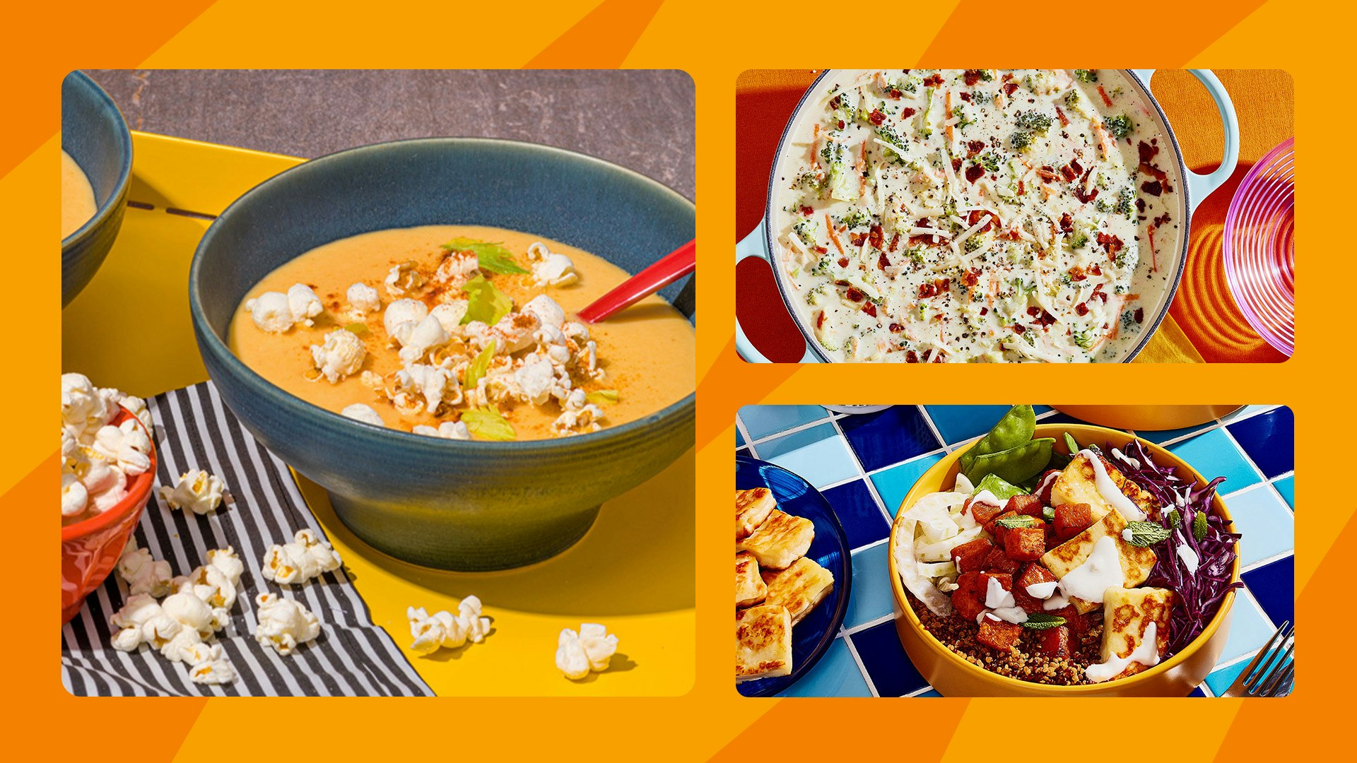 Vous ne savez pas quoi cuisiner? On y a pensé pour vous! Au menu de cette semaine, on ajoute à votre répertoire de grands classiques : un bol-repas aux patates douces et au halloumi, une soupe au brocoli et au fromage et bien plus encore.