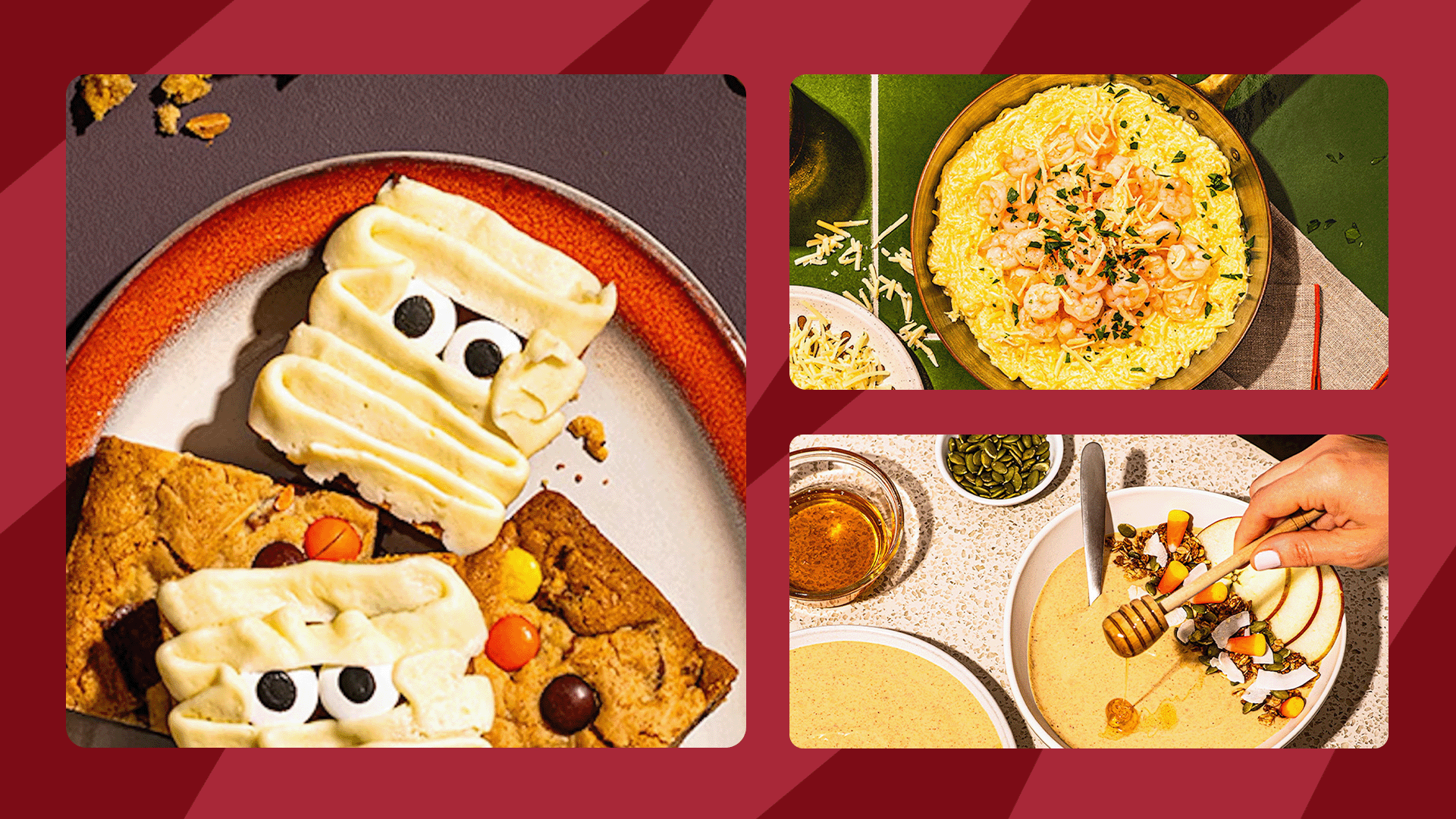 Vous ne savez pas quoi cuisiner? On y a pensé pour vous! Au menu de cette semaine, on ajoute à votre répertoire de grands classiques : Des blondies au chocolat d’Halloween, une courge spaghetti Alfredo aux crevettes, et bien plus encore.