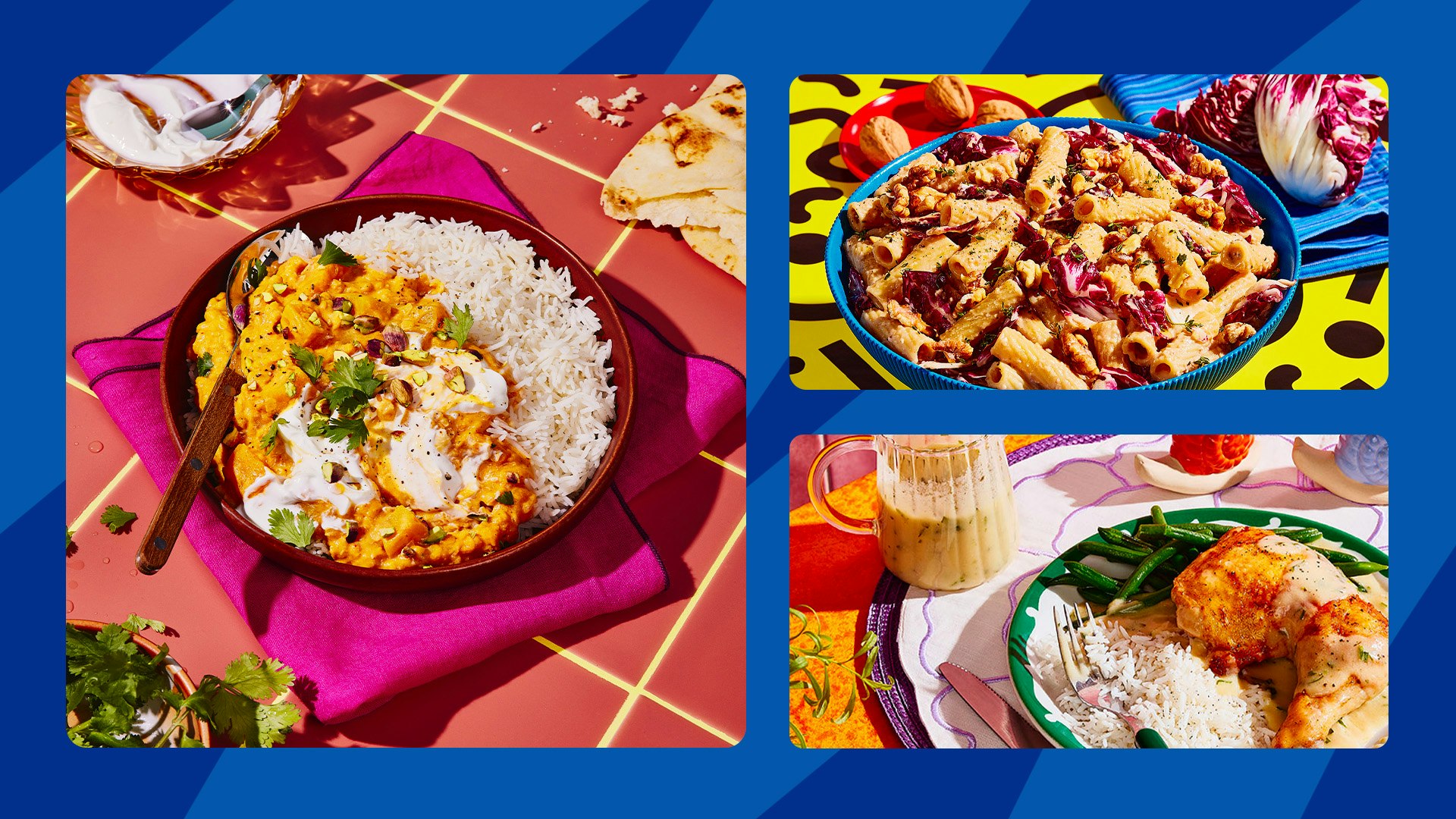Vous ne savez pas quoi cuisiner? On y a pensé pour vous! Au menu de cette semaine, on ajoute à votre répertoire de grands classiques : un cari de lentilles et de courges, des pâtes au radicchio et bien plus encore.