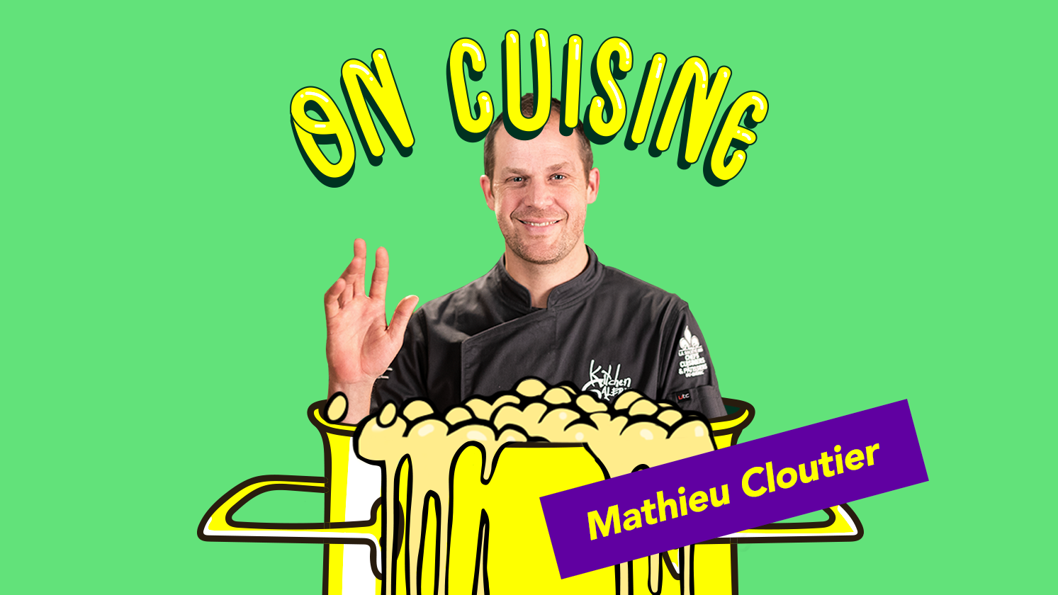 Pendant que Mathieu Cloutier, chef de la Kitchen Galerie, prépare la recette qui le faisait triper petit, l’équipe de Recettes d’ici le cuisine bien comme il faut. On lui a même demandé s’il avait déjà eu des rapprochements dans une cuisine. Sa réponse, juste ici :