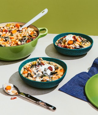 Ragoût crémeux de haricots blancs, de bette à carde et de bacon
