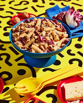 Pâtes au radicchio, sauce aux haricots blancs et aux noix de Grenoble
