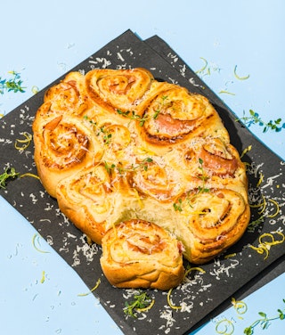 « Petits pains briochés au jambon et au parmesan ne laissent personne indifférent », dirait-on dans un jingle expressément inventé pour cette recette, et cette recette seulement. Si vous vous sentez aussi créatif que nous avec les rimes et avez envie de troquer vos oeufs tournés-crevés du samedi matin pour de la pure décadence, ce sont ces petits pains bien consistants qu’il faut regarder, pas nous. C’est le moelleux du monkeybread qui rencontre un extra viande au resto déjeuner du coin avec la simplicité de la mijoteuse. Le déjeuner qui vous laissera bouche-bée-et-pleine.