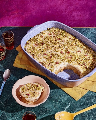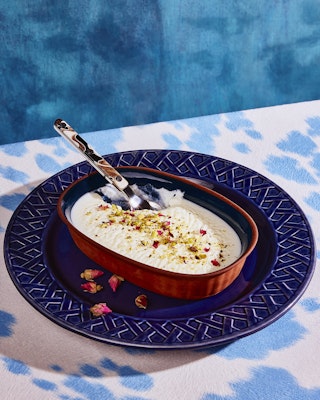En Syrie, les desserts (très variés!) sont souvent à base de lait. On privilégie des préparations simples, parfumées et texturées, comme l’Ashtalieh, une crème de lait rehaussée d’eau florale, puis garnie de pistaches et de pétales de rose séchés. «Plutôt que d’utiliser la vanille, on a toujours recours à l’eau de rose ou de fleur d’oranger pour parfumer le lait.»