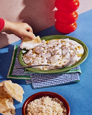 Prenez les Ich el-belbol, par exemple, dans lesquels la viande est marinée dans un mélange de yogourt, tahini, mélasse de grenade, cannelle et sept-épices. Ou encore le Fattet djaj (un plat à base de poulet et de pois chiches) et le Arman (un ragoût syrien au veau), où la viande est cuite avec des aromates, puis servie avec une sauce chaude et crémeuse au yogourt.