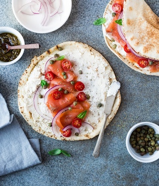 Le mariage heureux entre le saumon fumé et la ricotta d’ici n’est plus à prouver. Mais auriez-vous pensé à ajouter du pesto à ce duo gagnant et à les unir dans les liens sacrés du pain pita? Longue vie aux mariés et aux repas pas compliqués !