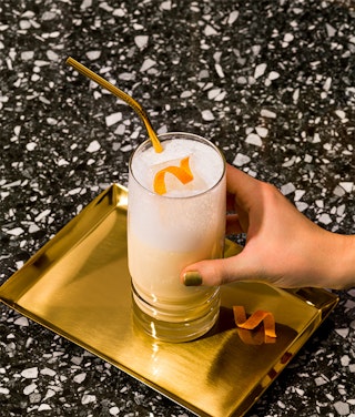 Un mocktail qui a le goût d’un Orange Julep, ça part bien les festivités. Ne faites pas le saut, le secret du fizz crémeux, c’est... l’ajout d’un œuf. Et, comme dirait tante Manon, « que j’vous VOYE » ignorer cet ingrédient! Vous perdriez tout le somptueux velouté. Assurez-vous simplement que l'œuf est extra frais, fouettez-le vigoureusement dans le mélange agrumes-crème-lait-fleur d’oranger, ajoutez un peu de soda et bien sûûûr que vous pouvez en avoir un autre.