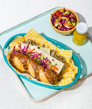 Oh, ÇA! Ça c’est un dîner de période floue-entre-Noël-et-le-Jour-de-l’an. Sortez vos épices jerk et pimpez votre dinde de réveillon qui ne demande qu’à connaître de meilleurs jours. Le mélange beurré de la dinde avec la pâte jerk, le bouillon de poulet, la crème 35 % et la fraîcheur de la salade de chou vont vous garder collé sur votre sofa, la mâchoire déployée, pendant que vous savourez ce mélange béni.