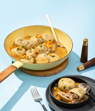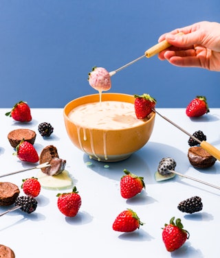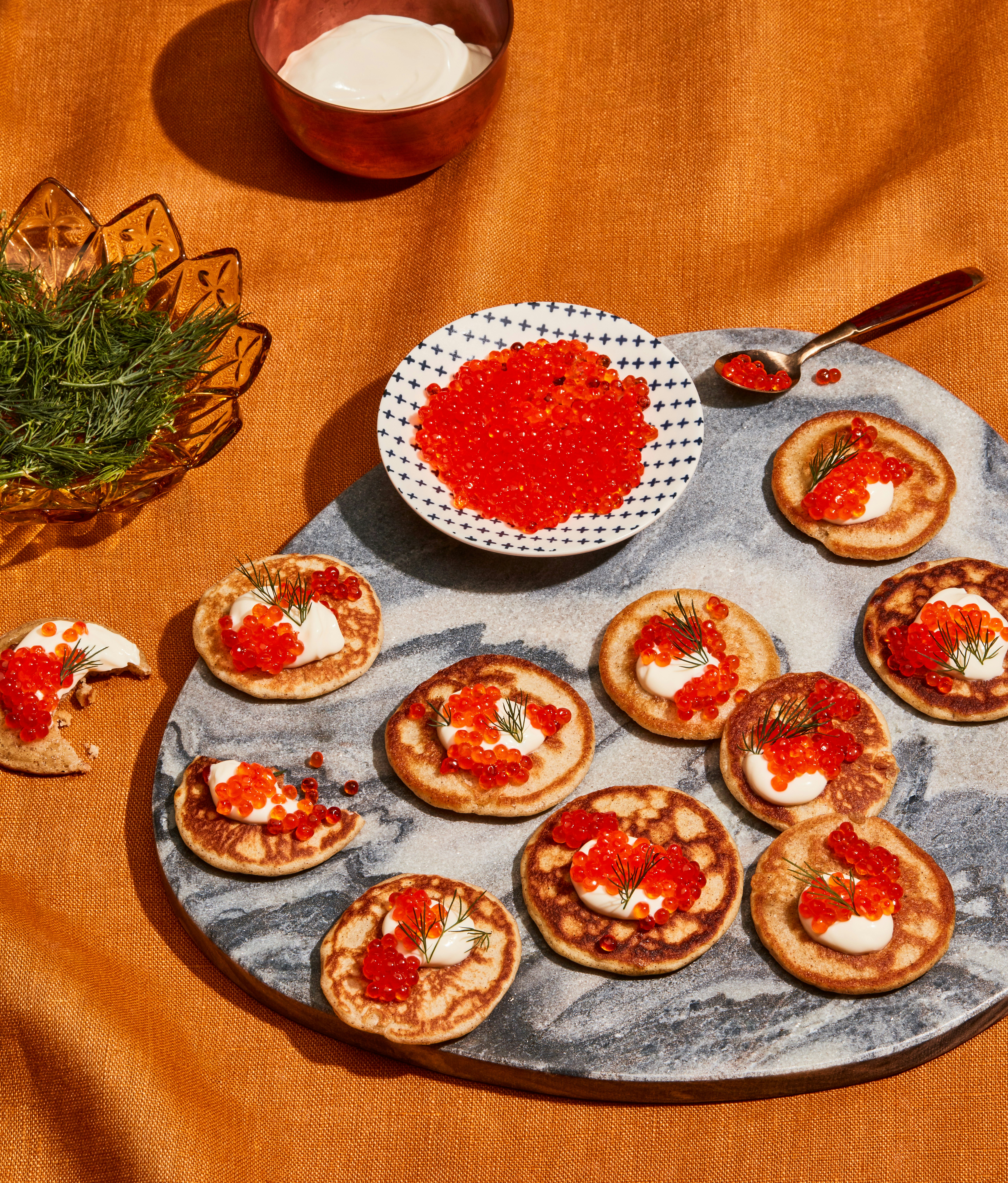 En préparant des bouchées à l’avance, vous n’aurez pas besoin de rester planté·e aux côtés de votre four toute la soirée. Gardez ça pour la dinde! Cette mousse de crevettes, ces blinis maison (mini pancakes au sarrasin) et ces bouchées de concombre aux crevettes et à la crème fraîche épicée sont délicieusement rétro, et parfaits pour partir la soirée. D’ailleurs, sortez votre crème de menthe et vos épaulettes, les bouchées rétro reviennent en force! L’envie vous prend de faire un aspic? Allez-y! Si vous restez plus du côté de la salade de patates, de pâtes ou même des sandwichs « pas d’croûte » sur un présentoir étagé, sachez que vous êtes dans le vent.