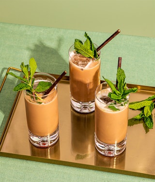 Vous servirez à vos convives un remontant personnalisé, c’est-à-dire avec ou sans alcool. Par exemple, proposez le Mojito sans alcool au lait au chocolat pour finir la soirée, chauffeur·euse désigné·e ou non. Sinon, l’option cocktail est toujours possible en ajoutant une touche alcoolisée aux Old-fashioned au lait sans alcool et Moscow Mule sans alcool. Lâchez-vous lousse avec ces recettes!
