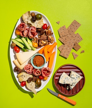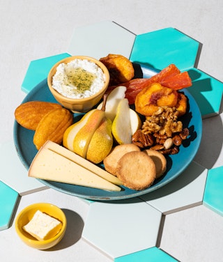Ah! Un plateau de fromages et de charcuteries! Juste à le lire, on a l’eau à la bouche. Quoi de mieux pour garder nos papilles gustatives éveillées que quelques noix de Grenoble sur notre morceau de pain garni du fromage Le 1608 ? Ou encore : l’accord biscotte-ricotta-amandes-miel.