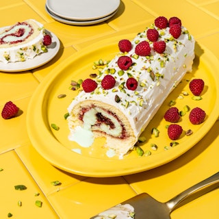 Meringue aux pistaches garnie de fruits pour St-Valentin solo