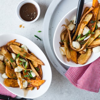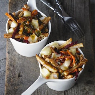 Poutine sauce barbecue à la bière, à la pomme et à l’érable