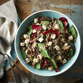 Salade de quinoa aux épinards, graines de citrouille et fromage