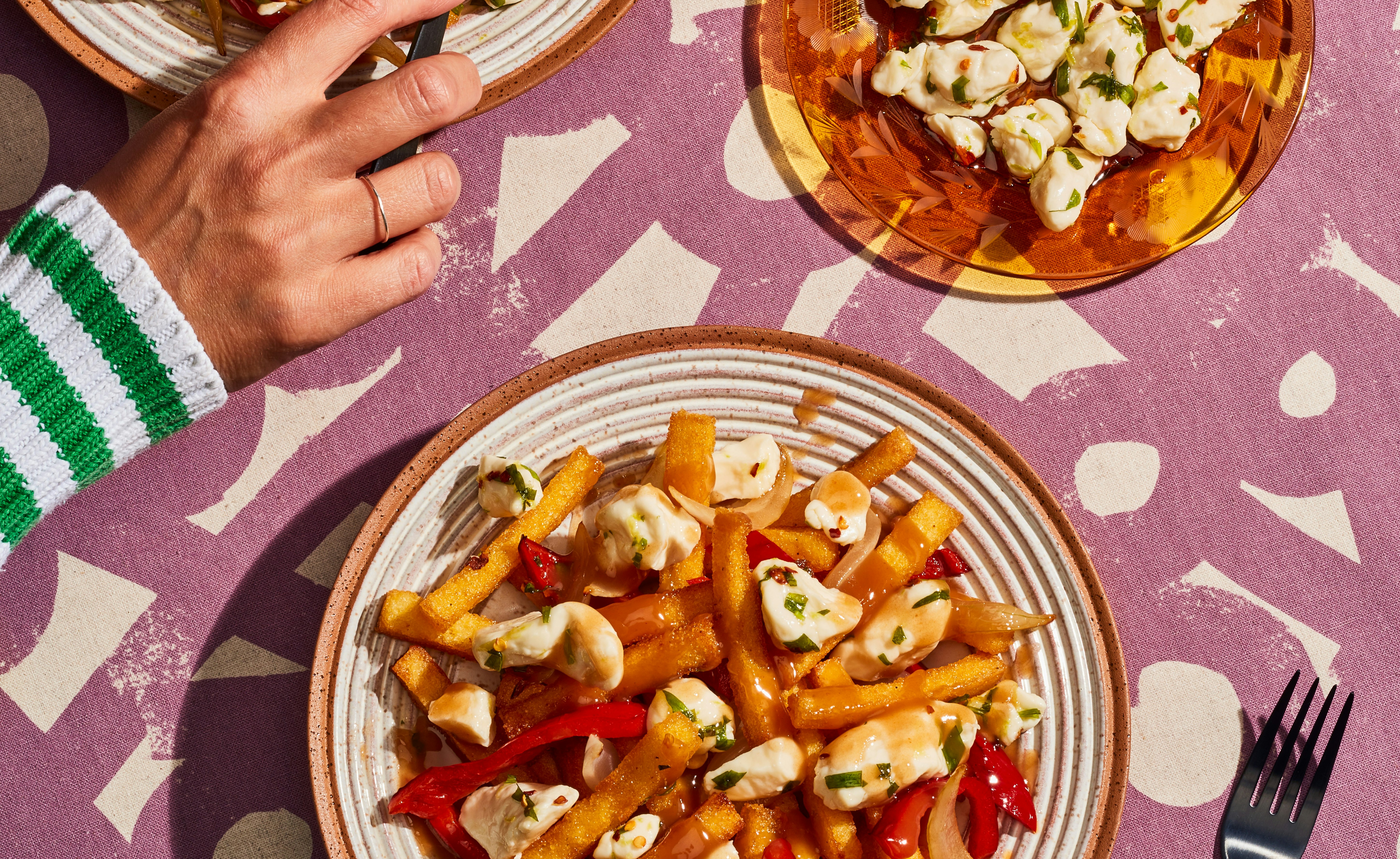 Poutine aux topinambours et au Camembert, sauce demi-glace à l’ail rôti