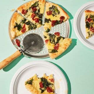 Pizza aux épinards, aux tomates séchées et au fromage