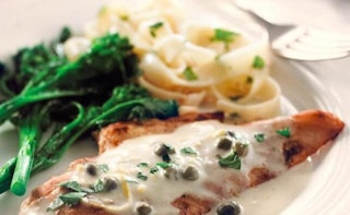 Piccata de poulet au citron, câpres et sauce fromagée