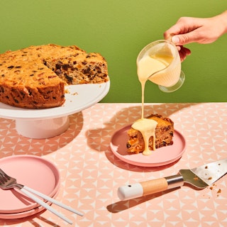 Gâteau aux fruits et sauce au fromage