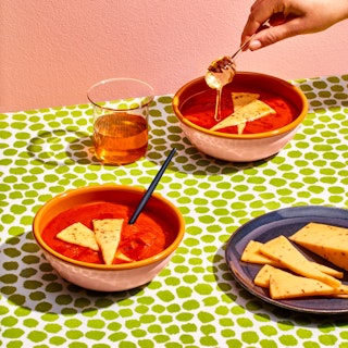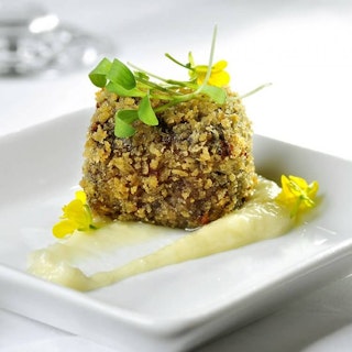 Croquette à la pancetta et au fromage Le Tremblay, confiture de canneberges et purée d’ail rôti